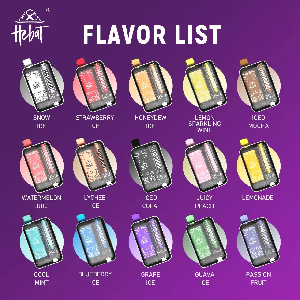 HEBAT 喜貝 10000口 拋棄式電子煙,為追求便利與高效續航的用戶打造。一次性設計,無需充電與更換煙彈,開盒即用,提供超過 10000口 的持久體驗。多種人氣口味選擇,從水果冰涼系到經典煙草,滿足各種口味需求。輕巧便攜,適合日常使用與外出攜帶。